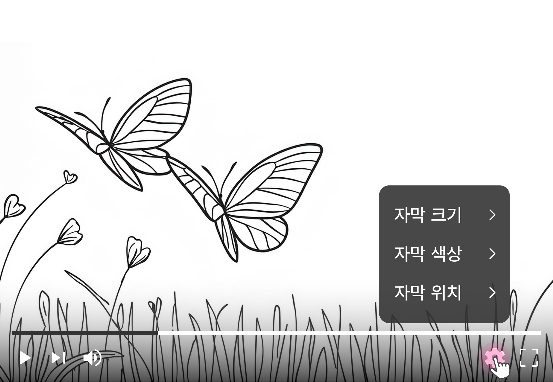 자막이 가려지면 사용자들은 중요한 정보를 놓칠 수 있다. 자막을 화면의 중요한 시각적 요소와 겹치지 않도록 배치하고, 필요한 경우 자막의 위치를 조정한다. 또한 배경과의 충분한 명도 대비 확보를 위해 자막 텍스트에 윤곽선을 표시하거나 반투명한 검은색 배경을 추가하는 것이 좋다. 가능한 경우, 사용자가 자막의 크기, 색상, 위치를 조정할 수 있는 옵션을 제공하면 대체 정보가 필요한 사용자의 편의성을 높일 수 있다.
